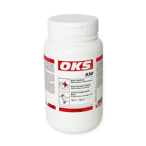 OKS 530 ist ein MoS2-Gleitlack auf Wasserbasis zur Schmierung hochbelasteter Ketten, wenn eine Öl- oder Fettschmierung nicht mehr möglich ist.